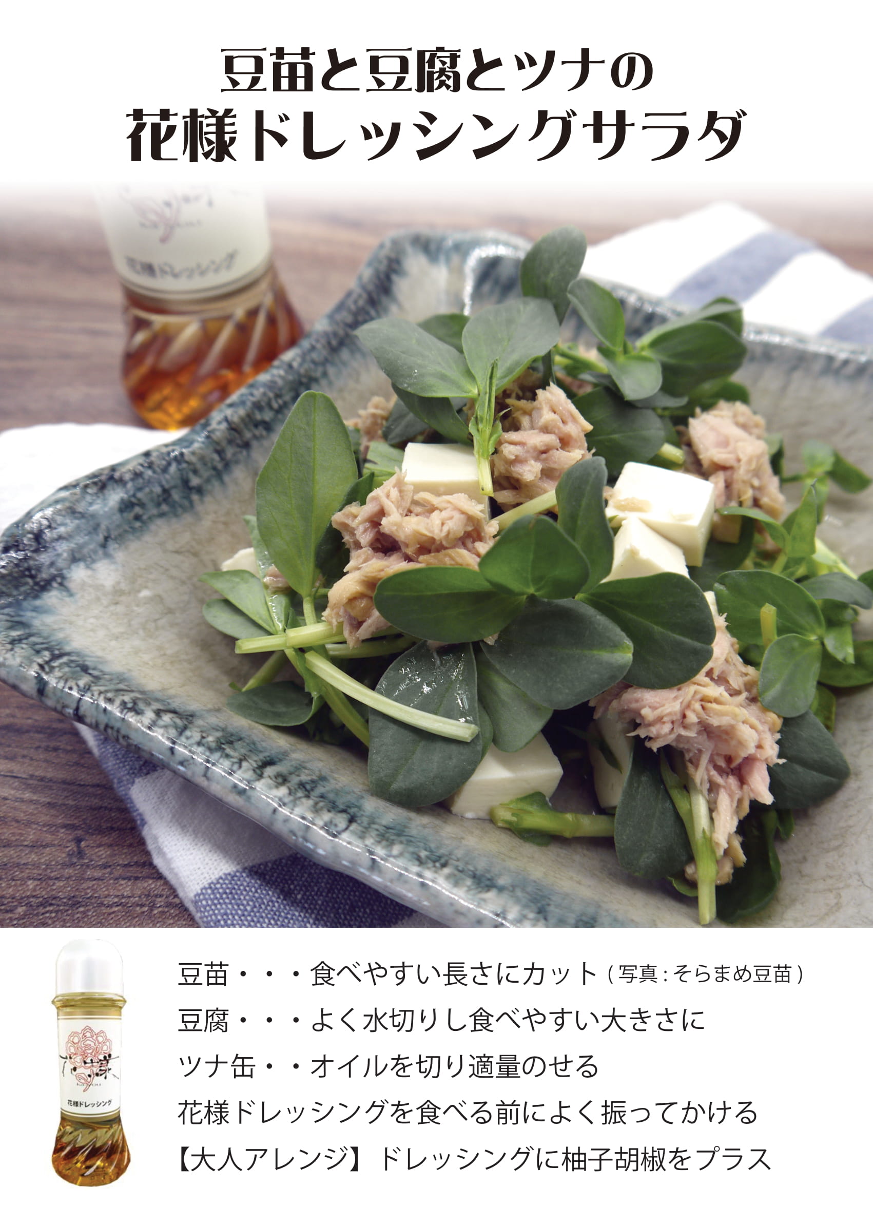 豆苗と豆腐とツナの 花様ドレッシングサラダ